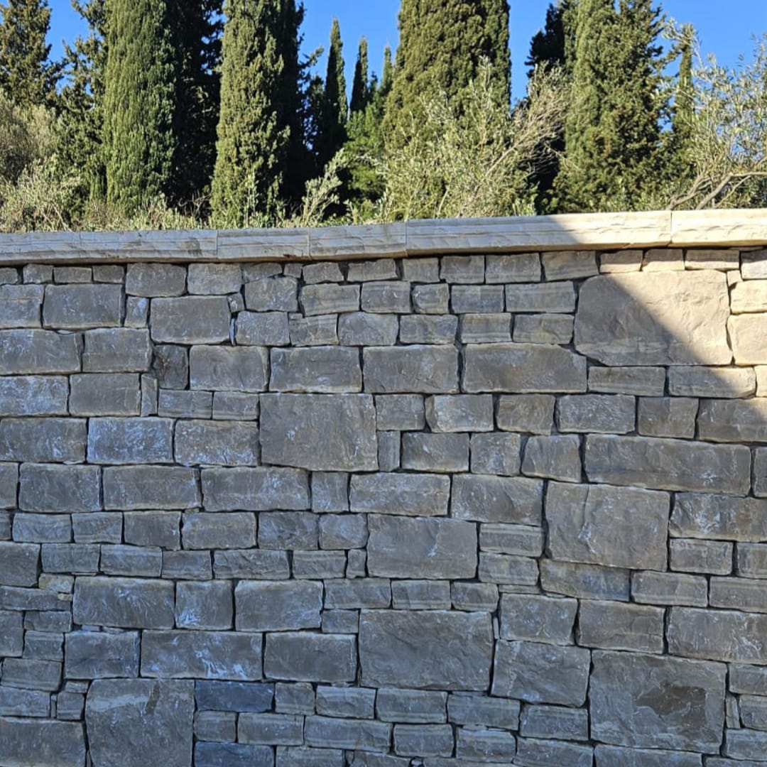 ✔ Bruchstein (Ben für Mauerwerk): Unregelmäßig geformte, massive Kalksteinblöcke mit einer Dicke von 6–10 cm, perfekt für rustikale Mauern.